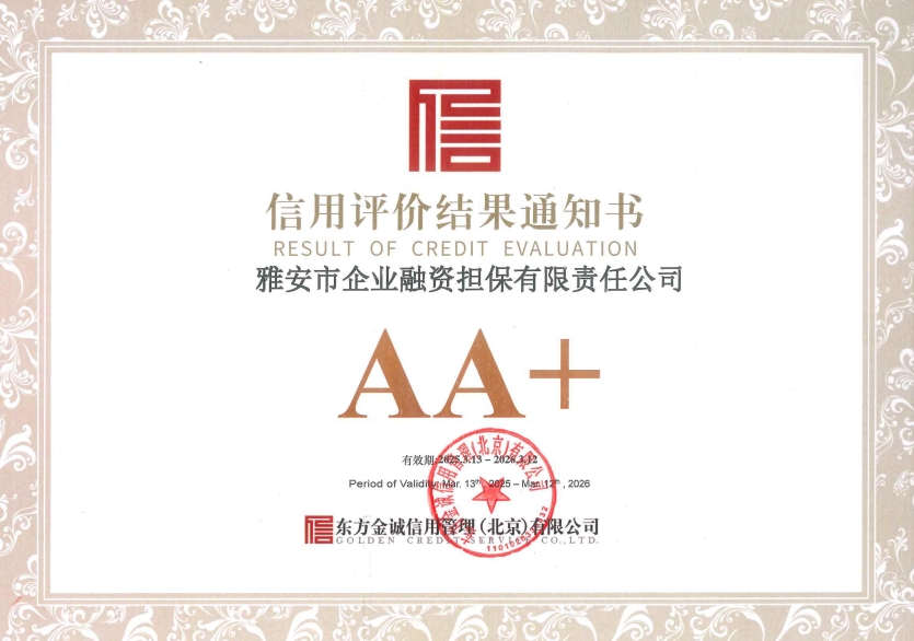 日前,東方金誠信用管理(北京)有限公司在對市擔保公司的信用狀況進行綜合分析和評估的基礎上,正式出具了評價報告,授予市擔保公司AA+評價等級。